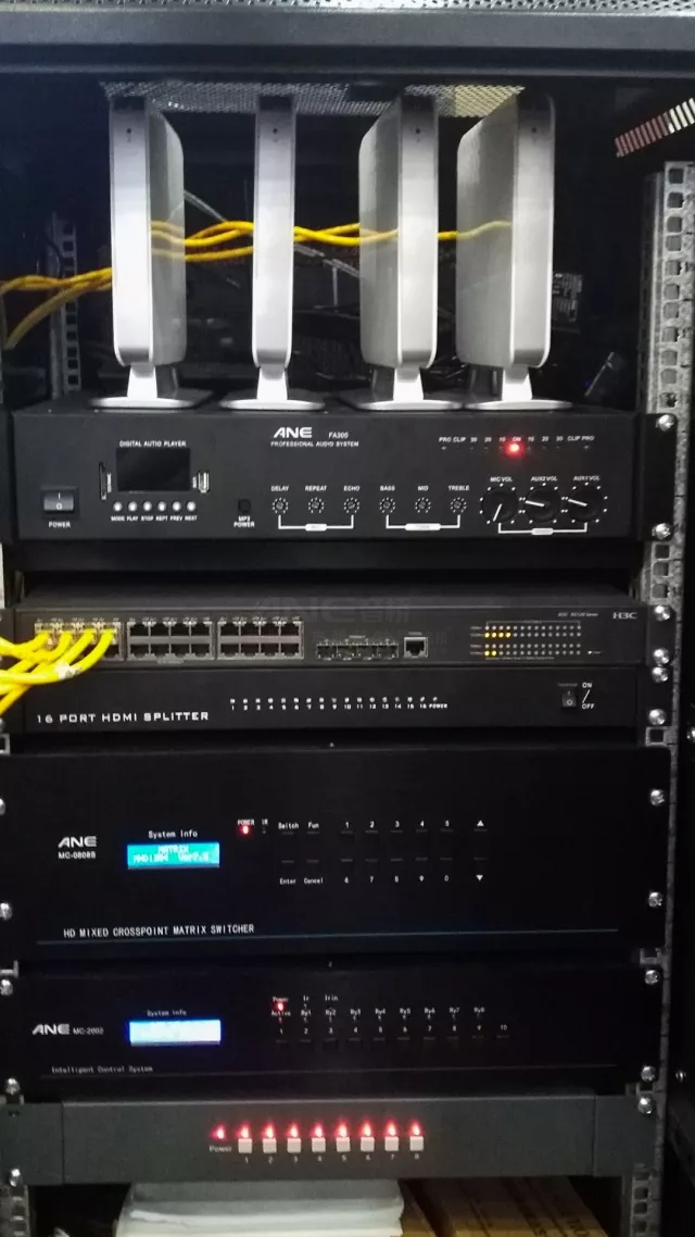 采用ANE中控主機(jī)及ANE高清混合矩陣主機(jī)作為主控系統(tǒng)設(shè)備,實(shí)現(xiàn)對(duì)所有設(shè)備進(jìn)行統(tǒng)一控制。ANE中控強(qiáng)大的內(nèi)置可編程接口可以控制幾乎所有的外接設(shè)備,系統(tǒng)擁有人性化的操作界面和交互式的控制結(jié)構(gòu)。大容量FLASH存儲(chǔ)器,可保存高達(dá)2000多條控制指令,滿足任何場(chǎng)合的控制存儲(chǔ)要求,支持?jǐn)U展。
