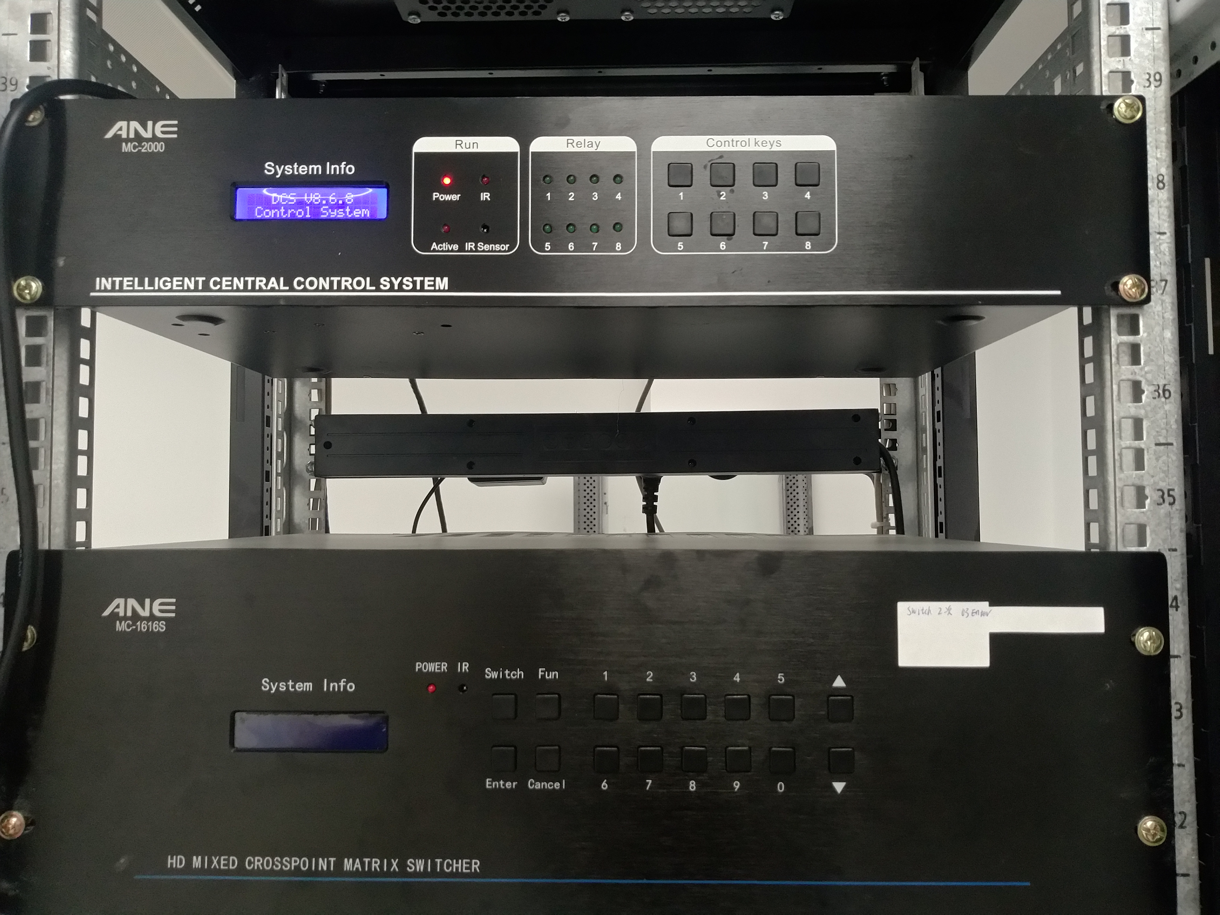 搭配智能中控矩陣系統,集中了燈光、機械、投影及視音頻控制手段于一體,滿足對會議室音視頻進行實時切換調度,中控系統實現采用無線觸摸屏進行遠程操作,且能根據會議室使用情況,編輯運行控制程序,達到音視頻能實時操控切換,解決繁瑣的操作。