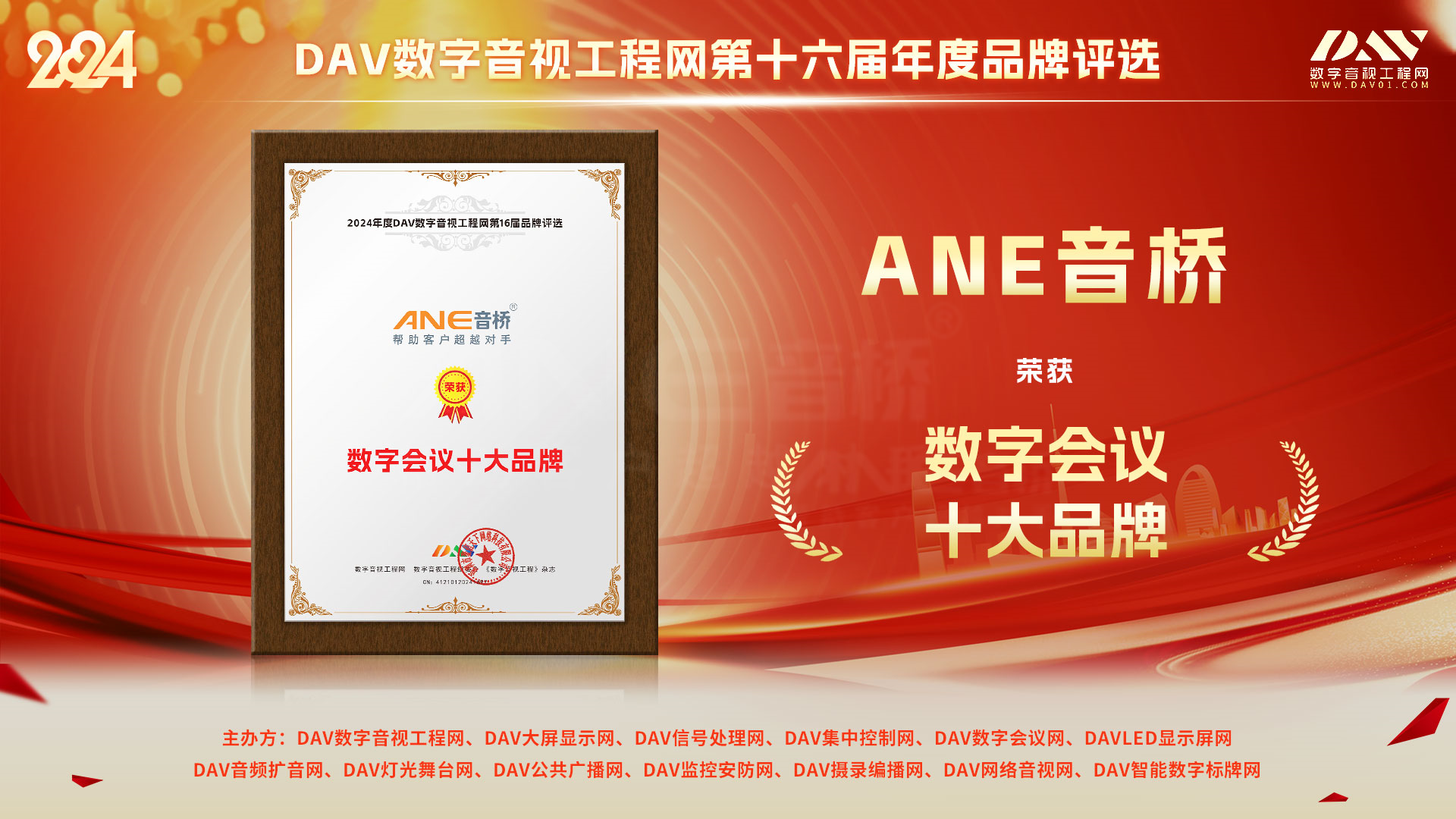 此次評選聚焦企業的創新性、前瞻性、引領力,經過3個多月的全面評估,結合網絡投票、現場考察、專家評審,ANE在研發創新能力、市場份額、用戶滿意度、產品質量、品牌聲譽等多個方面表現出色,最終榮獲“公共廣播十大品牌”和“數字會議十大品牌”兩項榮譽。